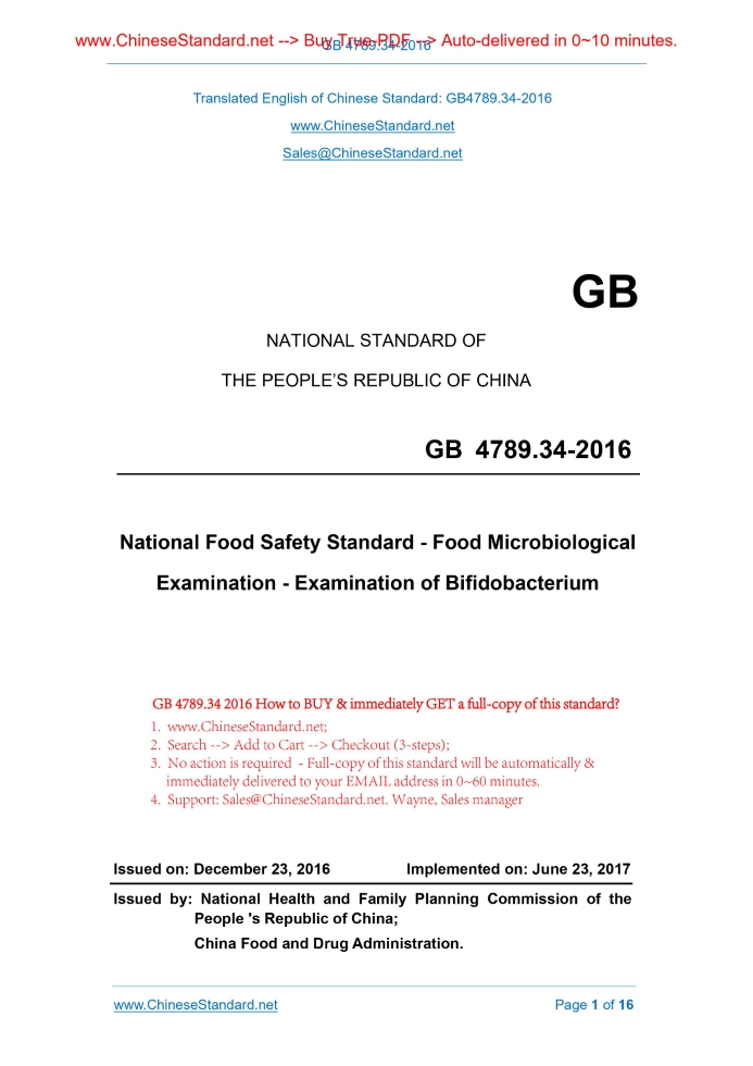 GB 4789.34-2016: National food safety standard - Food Microbiological Examination - Examination of Bifidobacterium Delivery: 9 seconds. True-PDF full-copy in English & invoice will be downloaded + auto-delivered via email. See step-by-step procedure Status: Valid GB 4789.34: Historical versions