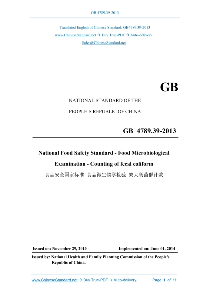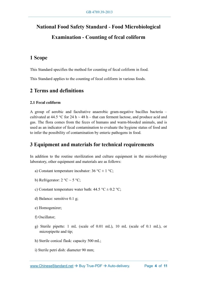 GB 4789.39-2013: National food safety standard - Food Microbiological Examination - Counting of fecal coliform Delivery: 9 seconds. True-PDF full-copy in English & invoice will be downloaded + auto-delivered via email. See step-by-step procedure Status: Valid GB 4789.39: Historical versions