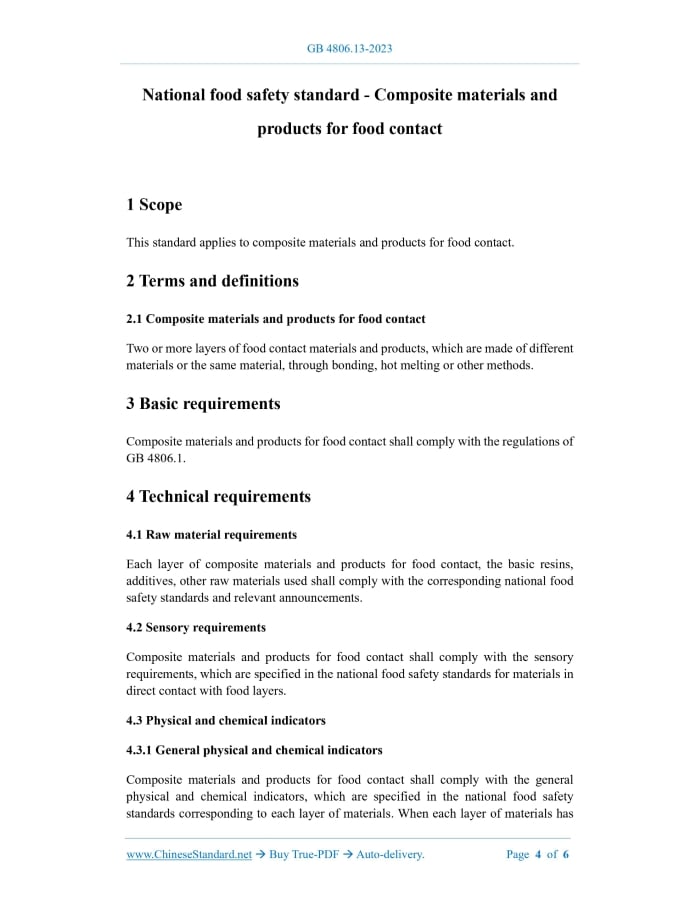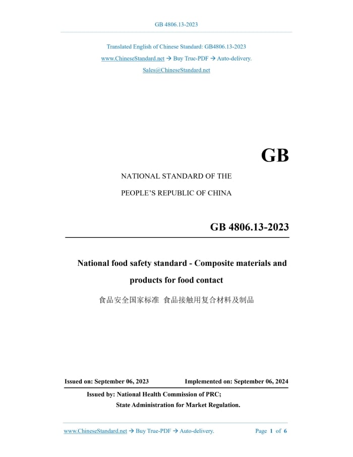 GB 4806.13-2023: National food safety standard - Composite materials and products for food contact Delivery: 9 seconds. True-PDF full-copy in English & invoice will be downloaded + auto-delivered via email. See step-by-step procedure Status: Valid