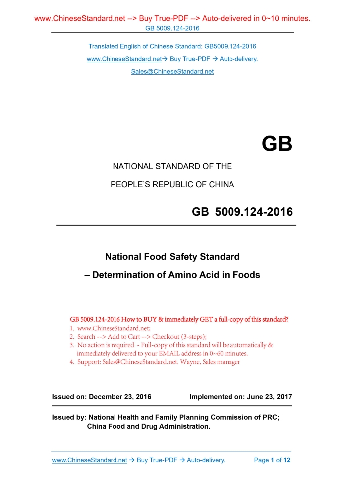 GB 5009.124-2016: National food safety standard - Determination of Amino Acid in Foods Delivery: 9 seconds. True-PDF full-copy in English & invoice will be downloaded + auto-delivered via email. See step-by-step procedure Status: Valid GB 5009.124: Historical versions