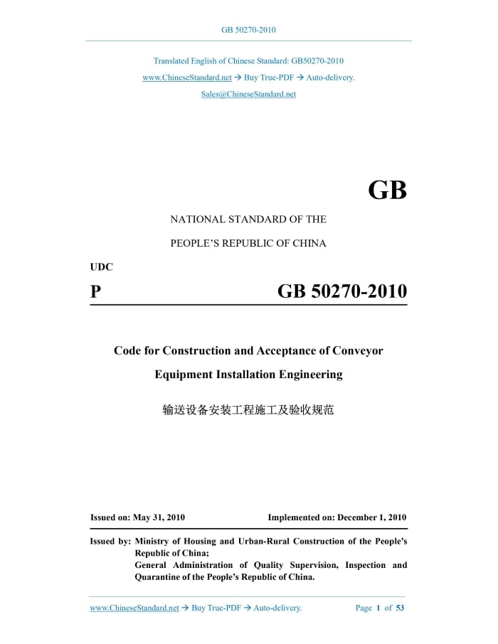 GB 50270-2010: Code for construction and acceptance of conveyor equipment installation engineering Delivery: 9 seconds. True-PDF full-copy in English & invoice will be downloaded + auto-delivered via email. See step-by-step procedure Status: Valid GB 50270: Historical versions