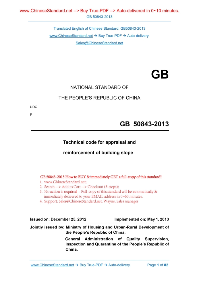 GB 50843-2013: Technical code for appraisal and reinforcement of building slope Delivery: 9 seconds. True-PDF full-copy in English & invoice will be downloaded + auto-delivered via email. See step-by-step procedure Status: Valid