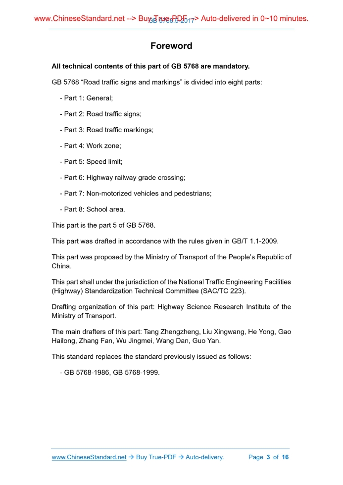 GB 5768.5-2017: Road traffic signs and markings - Part 5: Speed limit Delivery: 9 seconds. True-PDF full-copy in English & invoice will be downloaded + auto-delivered via email. See step-by-step procedure Status: Valid