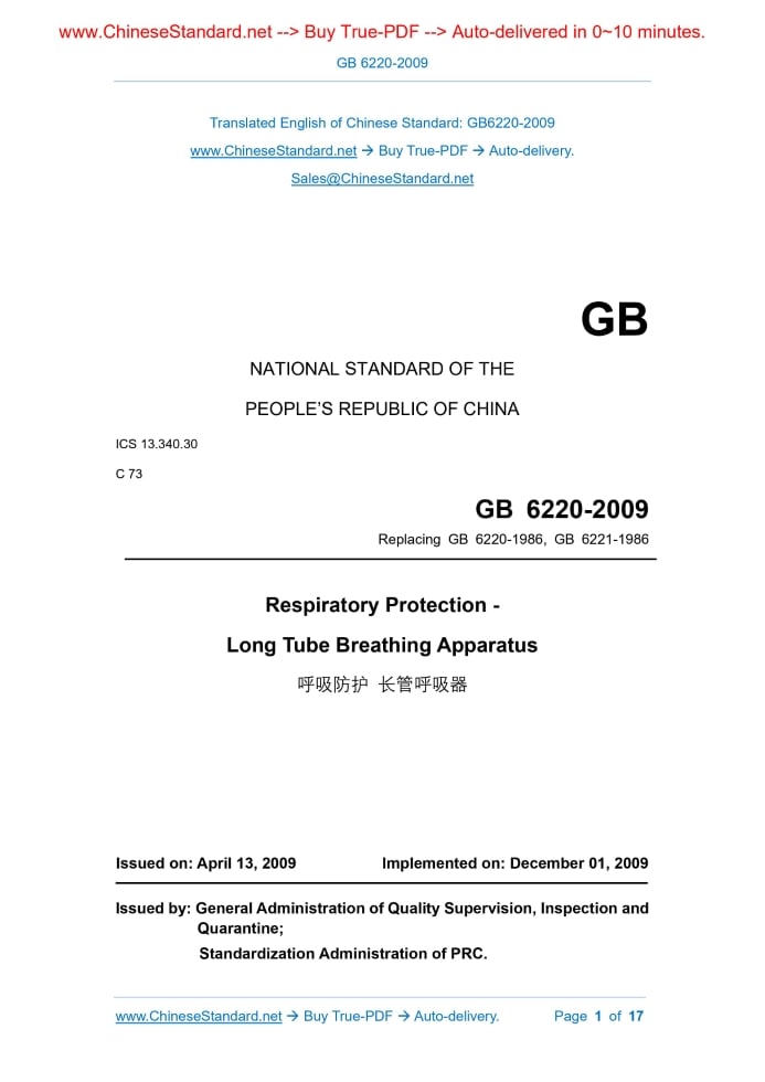 GB 6220-2009: Respiratory Protection - Long Tube Breathing Apparatus Delivery: 9 seconds. True-PDF full-copy in English & invoice will be downloaded + auto-delivered via email. See step-by-step procedure Status: Obsolete GB 6220: Historical versions