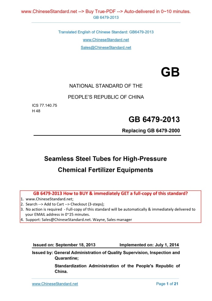GB 6479-2013: [GB/T 6479-2013] Seamless steel tubes for high-pressure chemical fertilizer equipment Delivery: 9 seconds. True-PDF full-copy in English & invoice will be downloaded + auto-delivered via email. See step-by-step procedure Status: Valid GB 6479: Historical versions