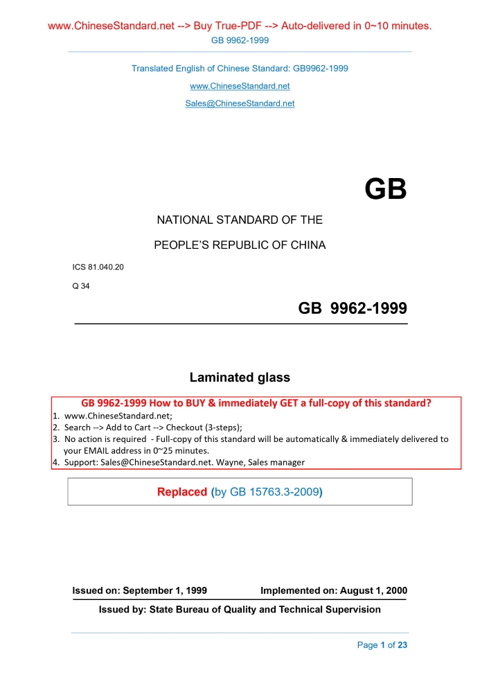 GB 9962-1999: Laminated glass Delivery: 9 seconds. True-PDF full-copy in English & invoice will be downloaded + auto-delivered via email. See step-by-step procedure Status: Obsolete GB 9962: Historical versions