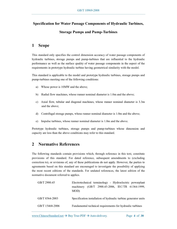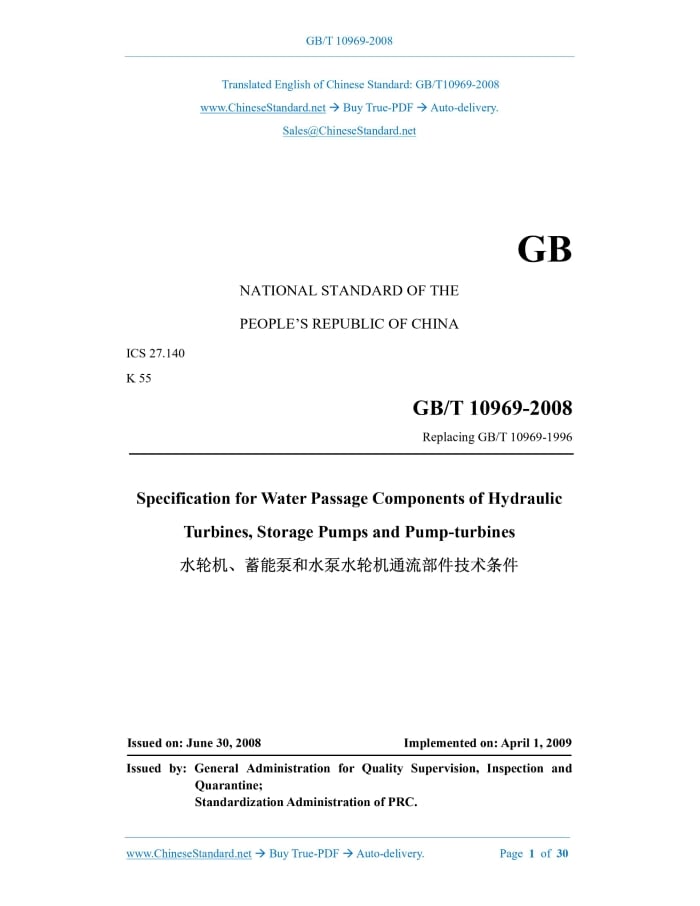 GB/T 10969-2008: Specification for water passage components of hydraulic turbines, storage pumps and pump-turbines Delivery: 9 seconds. True-PDF full-copy in English & invoice will be downloaded + auto-delivered via email. See step-by-step procedure Status: Obsolete GB/T 10969: Historical versions