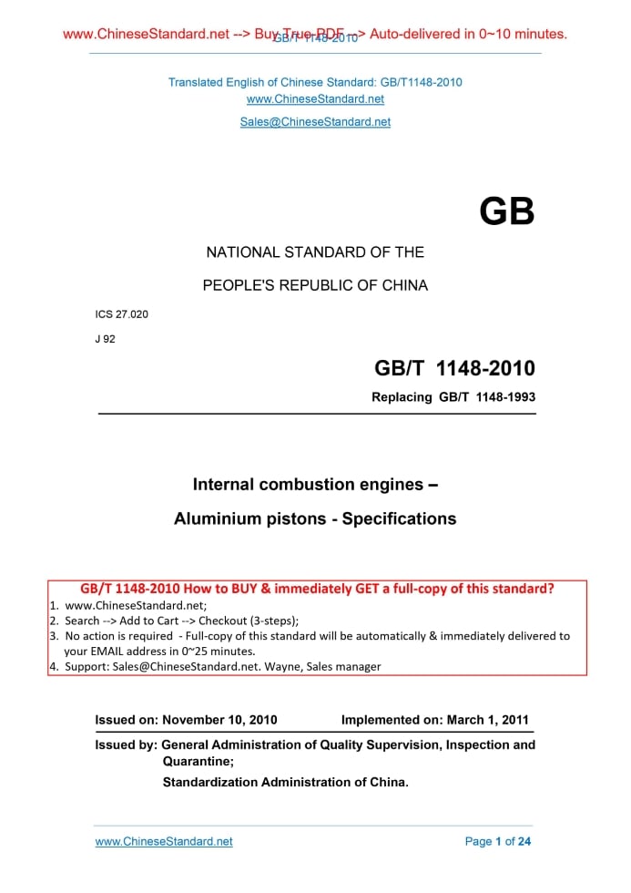 GB/T 1148-2010: Internal combustion engines - Aluminium pistons - Specifications Delivery: 9 seconds. True-PDF full-copy in English & invoice will be downloaded + auto-delivered via email. See step-by-step procedure Status: Valid GB/T 1148: Historical versions