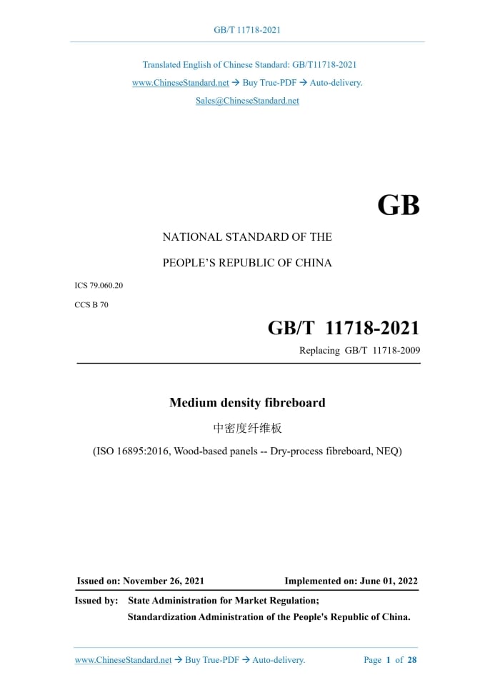 GB/T 11718-2021: Medium density fibreboard Delivery: 9 seconds. True-PDF full-copy in English & invoice will be downloaded + auto-delivered via email. See step-by-step procedure Status: Valid GB/T 11718: Historical versions