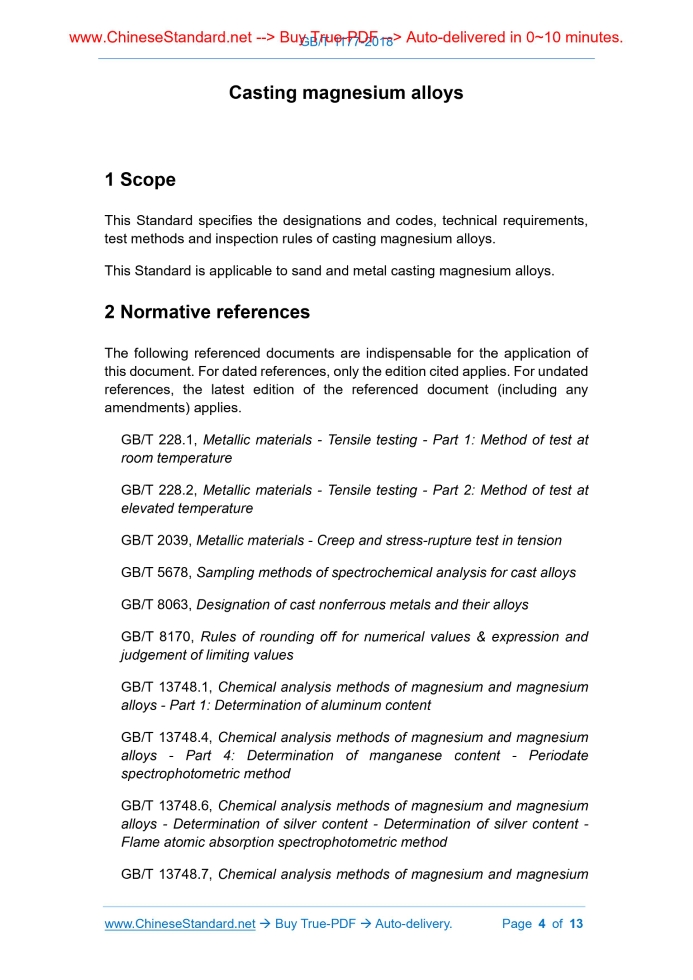 GB/T 1177-2018: Casting magnesium alloys Delivery: 9 seconds. True-PDF full-copy in English & invoice will be downloaded + auto-delivered via email. See step-by-step procedure Status: Valid GB/T 1177: Historical versions