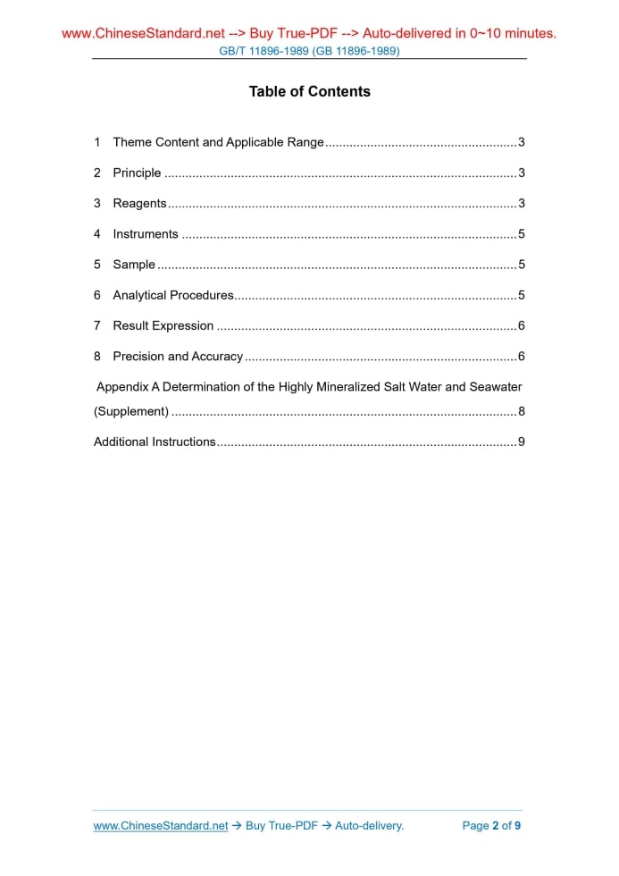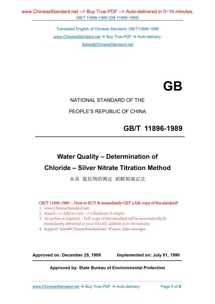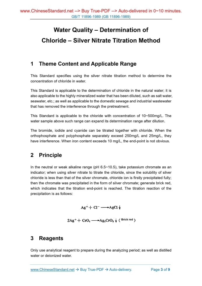 GB/T 11896-1989: [GB 11896-1989] Water quality. Determination of chloride. Silver nitrate titration method Delivery: 9 seconds. True-PDF full-copy in English & invoice will be downloaded + auto-delivered via email. See step-by-step procedure