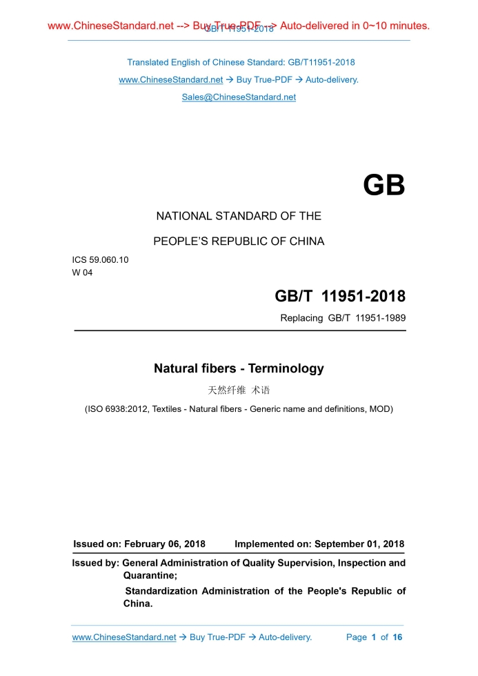 GB/T 11951-2018: Natural fibres -- Terminology Delivery: 9 seconds. True-PDF full-copy in English & invoice will be downloaded + auto-delivered via email. See step-by-step procedure Status: Valid GB/T 11951: Historical versions