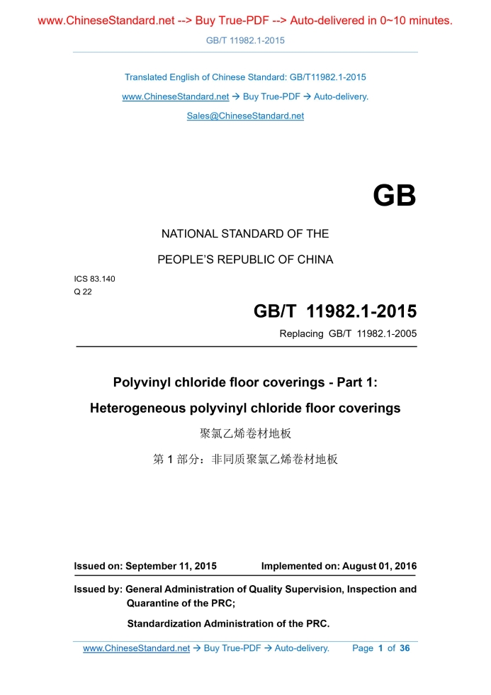 GB/T 11982.1-2015: Polyvinyl chloride floor coverings - Part 1: Heterogeneous polyvinyl chloride floor coverings Delivery: 9 seconds. True-PDF full-copy in English & invoice will be downloaded + auto-delivered via email. See step-by-step procedure Status: Valid GB/T 11982.1: Historical versions