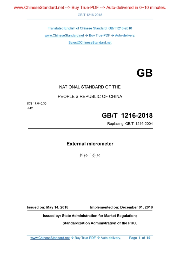 GB/T 1216-2018: External micrometer Delivery: 9 seconds. True-PDF full-copy in English & invoice will be downloaded + auto-delivered via email. See step-by-step procedure Status: Valid GB/T 1216: Historical versions