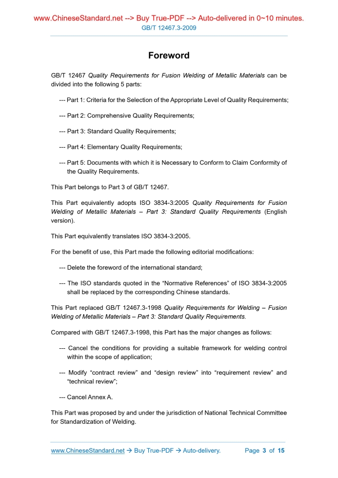 GB/T 12467.3-2009: Quality requirements for fusion welding of metallic materials -- Part 3: Standard quality requirements Delivery: 9 seconds. True-PDF full-copy in English & invoice will be downloaded + auto-delivered via email. See step-by-step procedure Status: Valid GB/T 12467.3: Historical versions