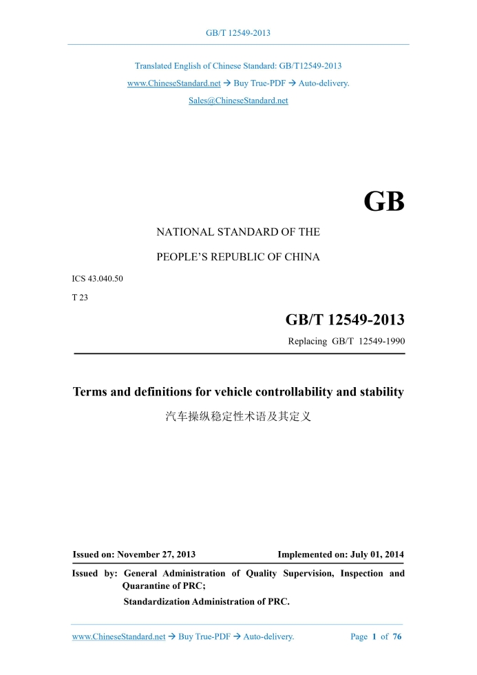 GB/T 12549-2013: Terms and definitions for vehicle controllability and stability Delivery: 9 seconds. True-PDF full-copy in English & invoice will be downloaded + auto-delivered via email. See step-by-step procedure Status: Valid GB/T 12549: Historical versions
