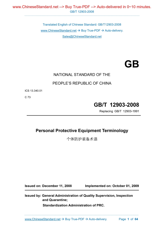 GB/T 12903-2008: Personal Protective Equipment Terminology Delivery: 9 seconds. True-PDF full-copy in English & invoice will be downloaded + auto-delivered via email. See step-by-step procedure Status: Valid GB/T 12903: Historical versions