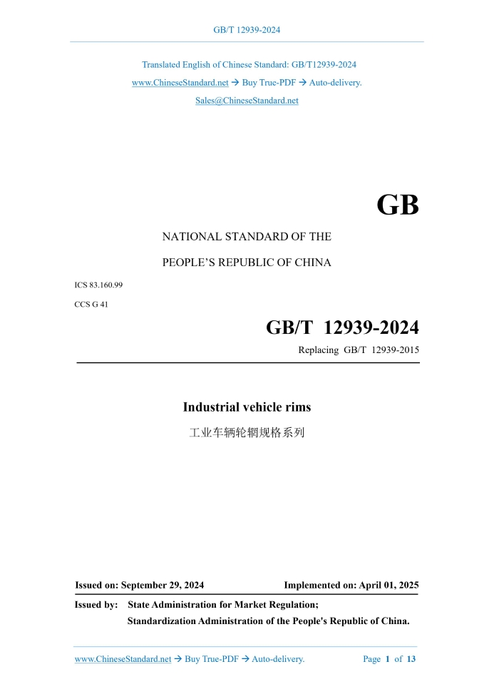 GB/T 12939-2024: Industrial vehicle rims Delivery: 9 seconds. True-PDF full-copy in English & invoice will be downloaded + auto-delivered via email. See step-by-step procedure Status: Valid GB/T 12939: Historical versions