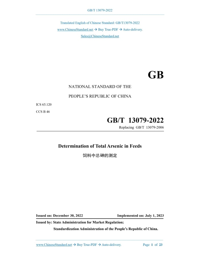 GB/T 13079-2022: Determination of total arsenic in feeds Delivery: 9 seconds. True-PDF full-copy in English & invoice will be downloaded + auto-delivered via email. See step-by-step procedure Status: Valid GB/T 13079: Historical versions