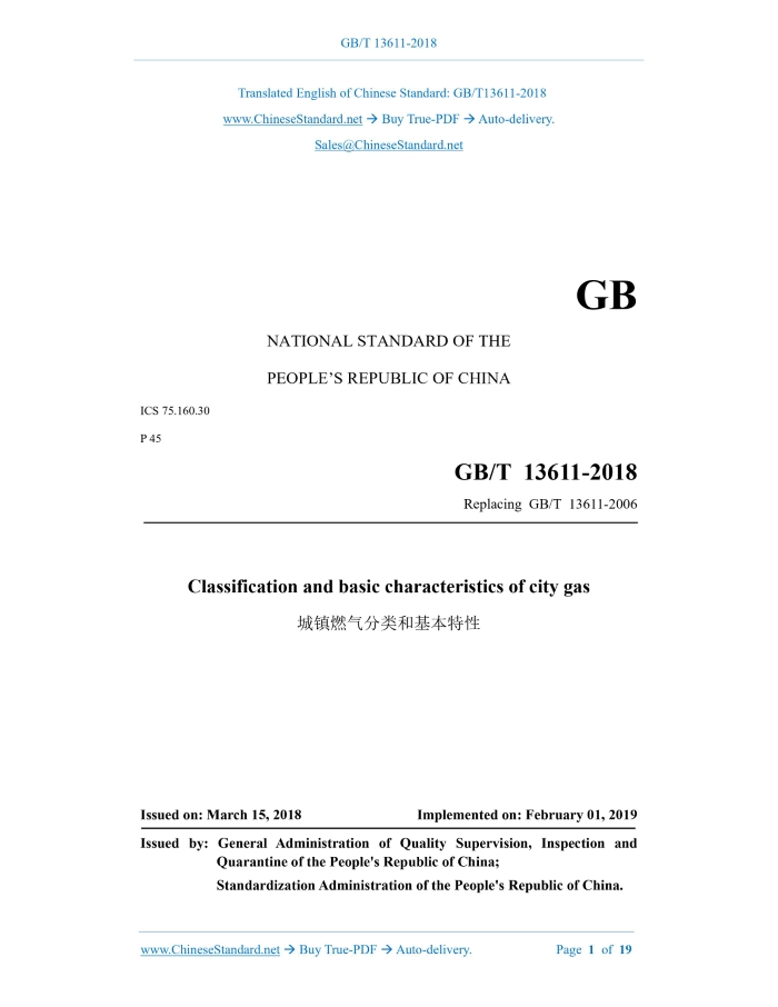 GB/T 13611-2018: Classification and basic characteristics of city gas Delivery: 9 seconds. True-PDF full-copy in English & invoice will be downloaded + auto-delivered via email. See step-by-step procedure Status: Valid GB/T 13611: Historical versions