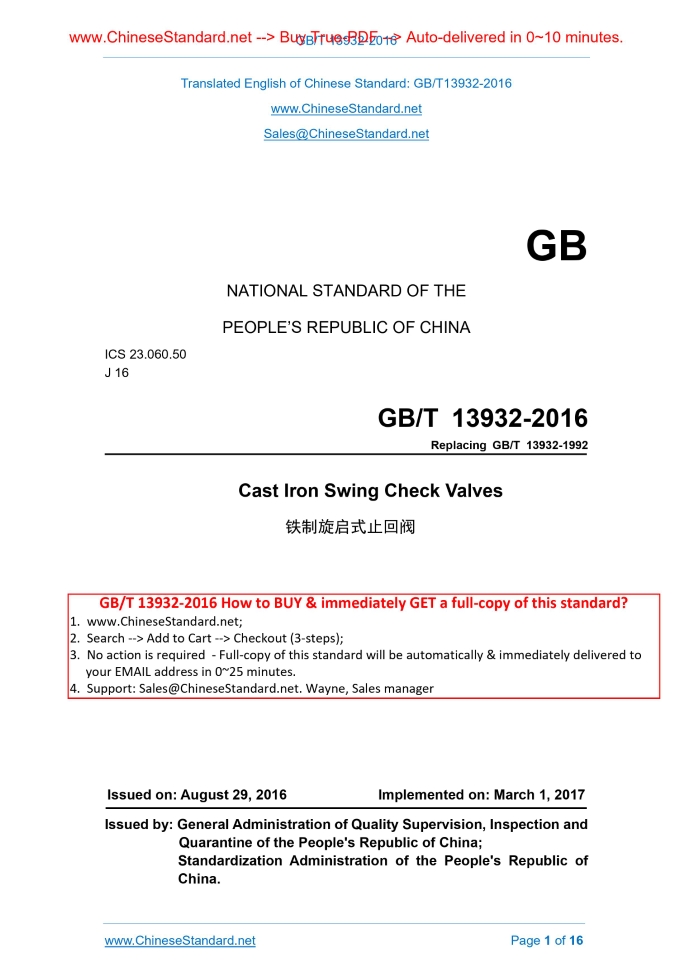 GB/T 13932-2016: Cast Iron Swing Check Valves Delivery: 9 seconds. True-PDF full-copy in English & invoice will be downloaded + auto-delivered via email. See step-by-step procedure Status: Valid GB/T 13932: Historical versions