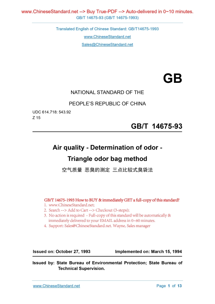 GB/T 14675-1993: Air quality. Determination of odor. Triangle odor bag method Delivery: 9 seconds. True-PDF full-copy in English & invoice will be downloaded + auto-delivered via email. See step-by-step procedure Status: Obsolete
