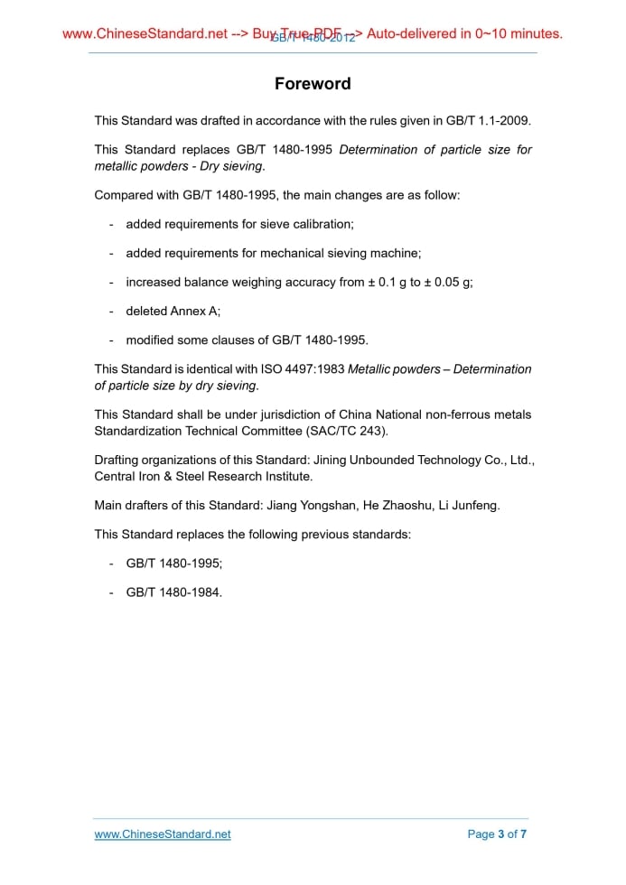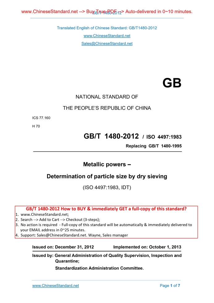 GB/T 1480-2012: Metallic powders -- Determination of particle size by dry sieving Delivery: 9 seconds. True-PDF full-copy in English & invoice will be downloaded + auto-delivered via email. See step-by-step procedure Status: Valid GB/T 1480: Historical versions