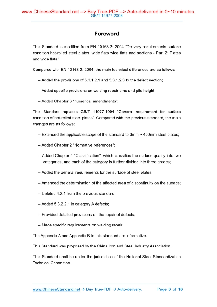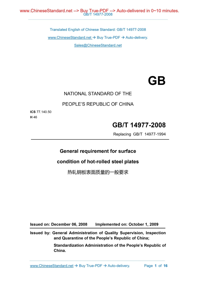 GB/T 14977-2008: General requirement for surface condition of hot-rolled steel plates Delivery: 9 seconds. True-PDF full-copy in English & invoice will be downloaded + auto-delivered via email. See step-by-step procedure Status: Valid GB/T 14977: Historical versions