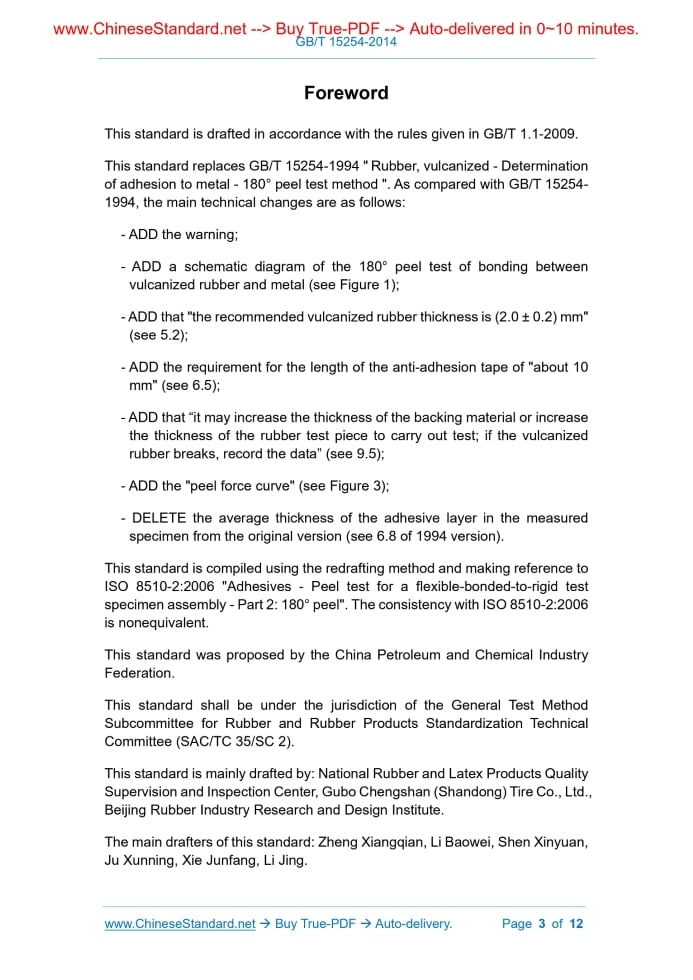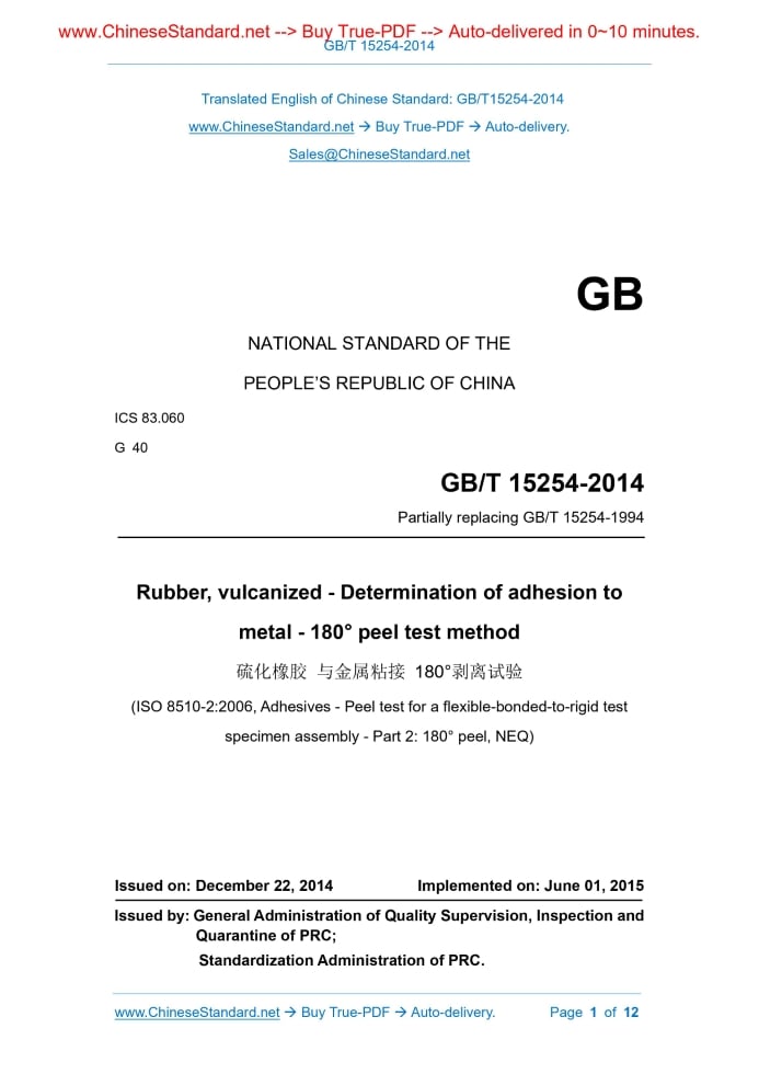 GB/T 15254-2014: Rubber, vulcanized -- Determination of adhesion to metal-180 Degree Peel test method Delivery: 9 seconds. True-PDF full-copy in English & invoice will be downloaded + auto-delivered via email. See step-by-step procedure Status: Valid GB/T 15254: Historical versions