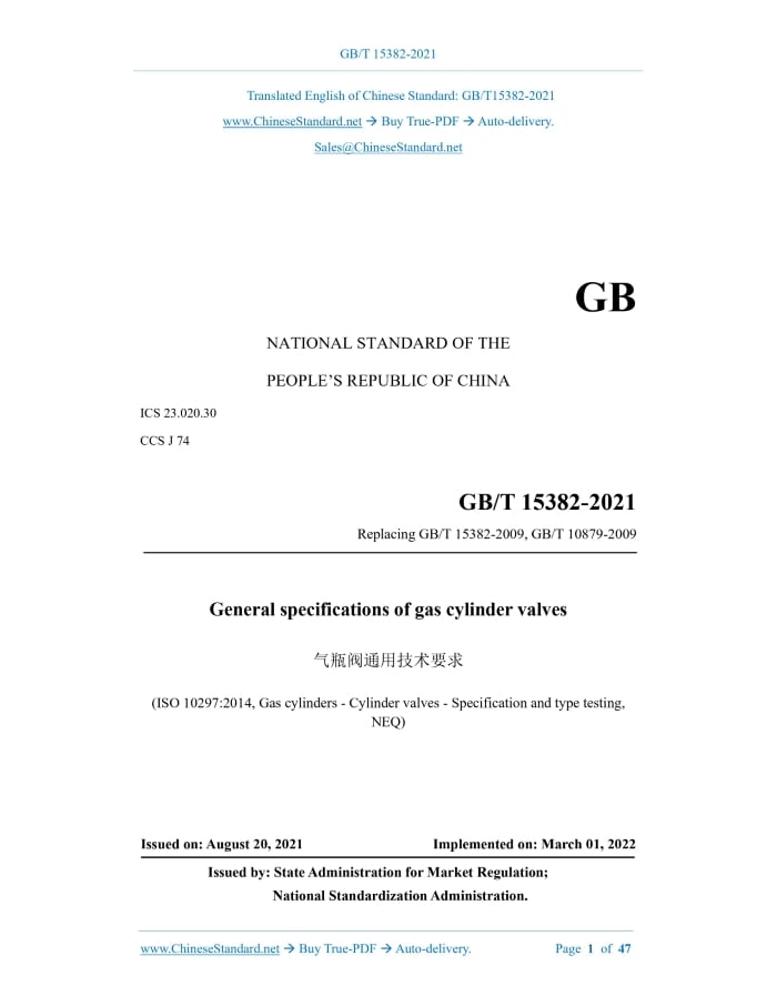 GB/T 15382-2021: General specifications of gas cylinder valves Delivery: 9 seconds. True-PDF full-copy in English & invoice will be downloaded + auto-delivered via email. See step-by-step procedure Status: Valid GB/T 15382: Historical versions