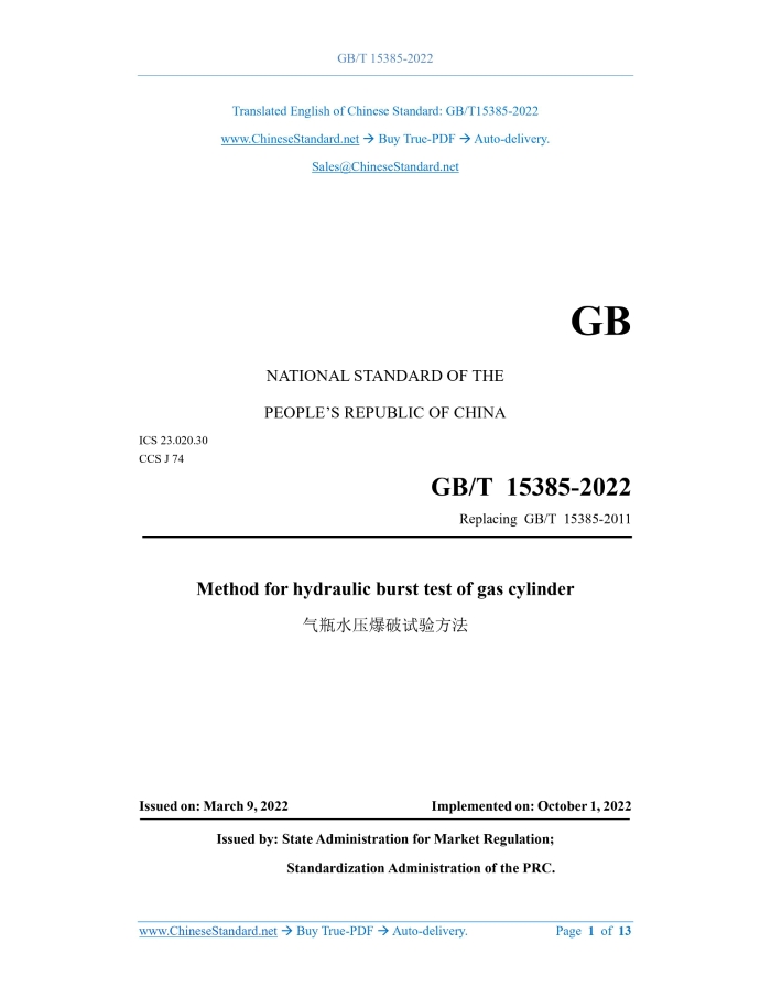 GB/T 15385-2022: Method for hydraulic burst test of gas cylinder Delivery: 9 seconds. True-PDF full-copy in English & invoice will be downloaded + auto-delivered via email. See step-by-step procedure Status: Valid GB/T 15385: Historical versions