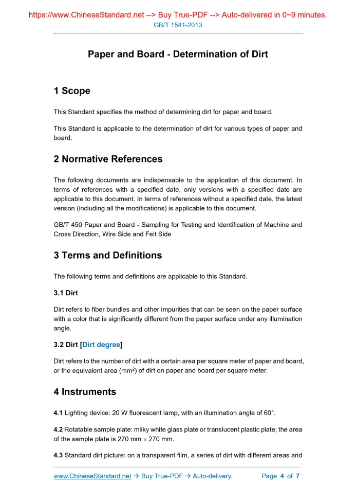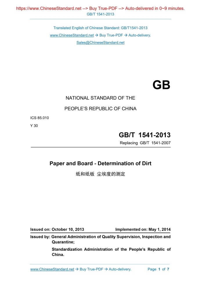 GB/T 1541-2013: Paper and board -- Determination of dirt Delivery: 9 seconds. True-PDF full-copy in English & invoice will be downloaded + auto-delivered via email. See step-by-step procedure Status: Valid GB/T 1541: Historical versions