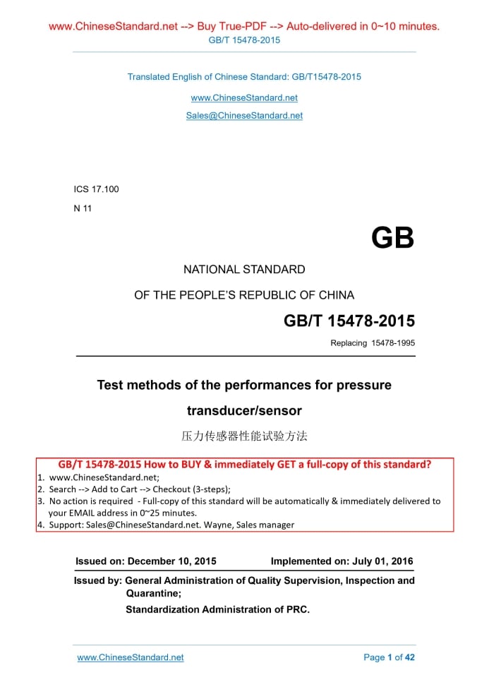 GB/T 15478-2015: Test methods of the performances for pressure transducer-sensor Delivery: 9 seconds. True-PDF full-copy in English & invoice will be downloaded + auto-delivered via email. See step-by-step procedure Status: Valid GB/T 15478: Historical versions