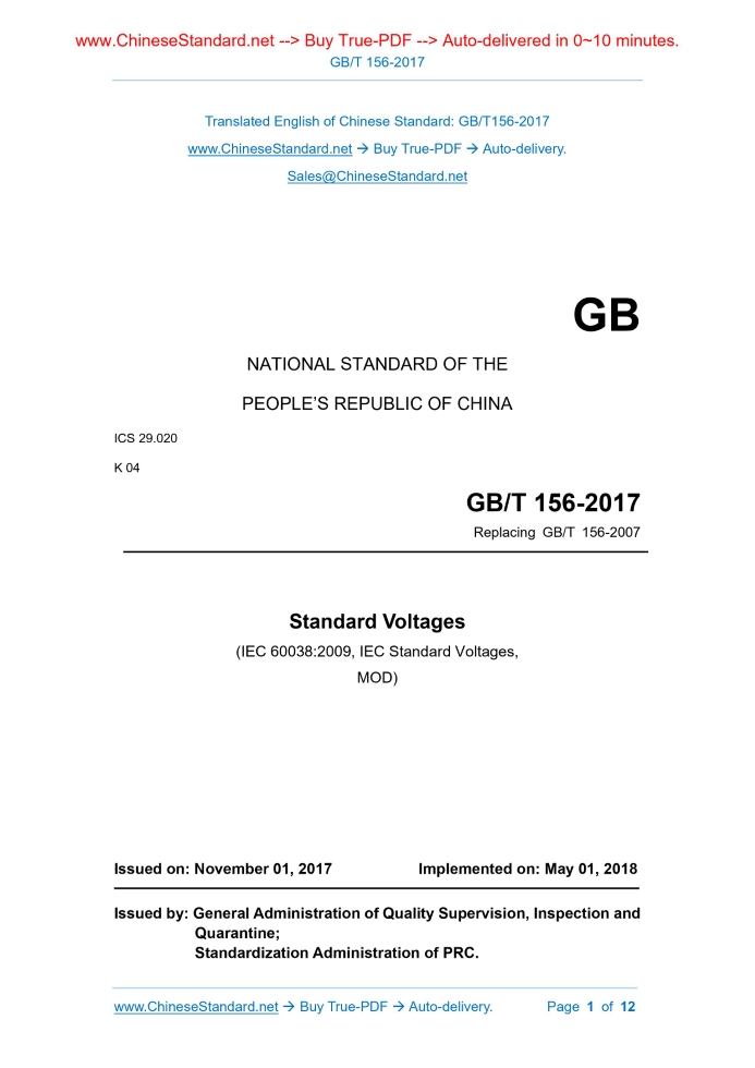 GB/T 156-2017: Standard voltages Delivery: 9 seconds. True-PDF full-copy in English & invoice will be downloaded + auto-delivered via email. See step-by-step procedure Status: Valid GB/T 156: Historical versions
