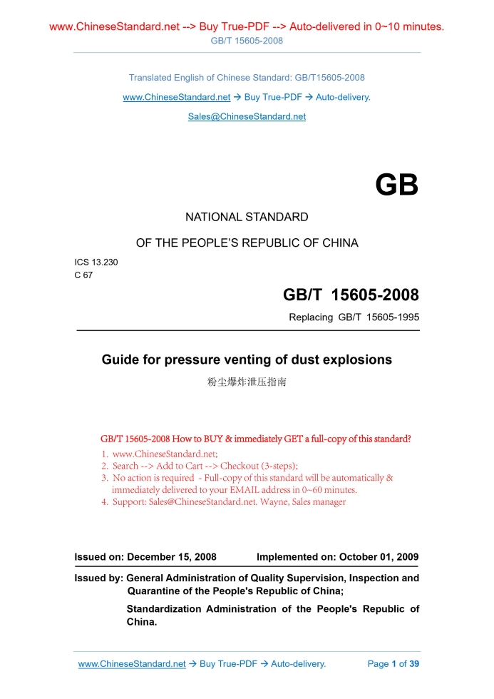 GB/T 15605-2008: Guide for pressure venting of dust explosions Delivery: 9 seconds. True-PDF full-copy in English & invoice will be downloaded + auto-delivered via email. See step-by-step procedure Status: Valid GB/T 15605: Historical versions