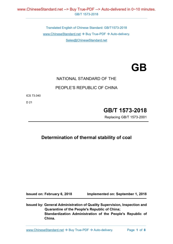 GB/T 1573-2018: Determination of thermal stability of coal Delivery: 9 seconds. True-PDF full-copy in English & invoice will be downloaded + auto-delivered via email. See step-by-step procedure Status: Valid GB/T 1573: Historical versions