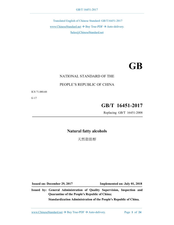 GB/T 16451-2017: Natural fatty alcohols Delivery: 9 seconds. True-PDF full-copy in English & invoice will be downloaded + auto-delivered via email. See step-by-step procedure Status: Valid GB/T 16451: Historical versions