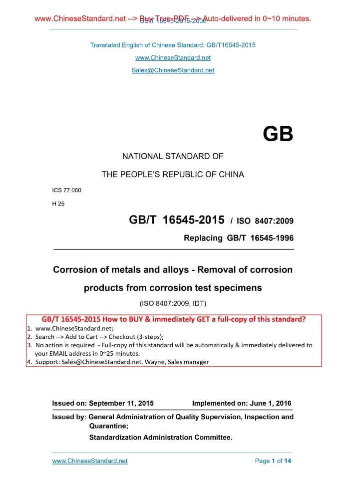 GB/T 16545-2015: Corrosion of metals and alloys -- Removal of corrosion products from corrosion test specimens Delivery: 9 seconds. True-PDF full-copy in English & invoice will be downloaded + auto-delivered via email. See step-by-step procedure Status: Valid GB/T 16545: Historical versions