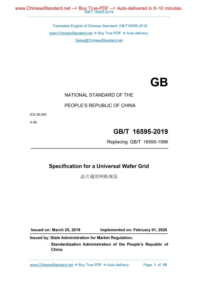 GB/T 16595-2019: Specification for a Universal Wafer Grid Delivery: 9 seconds. True-PDF full-copy in English & invoice will be downloaded + auto-delivered via email. See step-by-step procedure Status: Valid GB/T 16595: Historical versions