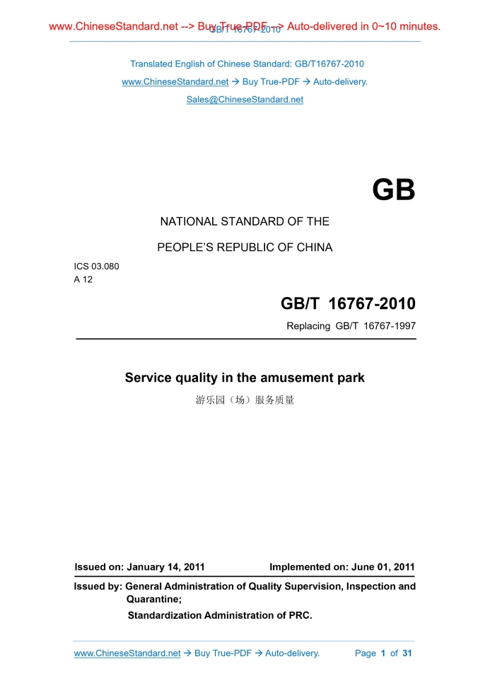 GB/T 16767-2010: Service quality in the amusement park Delivery: 9 seconds. True-PDF full-copy in English & invoice will be downloaded + auto-delivered via email. See step-by-step procedure Status: Valid GB/T 16767: Historical versions