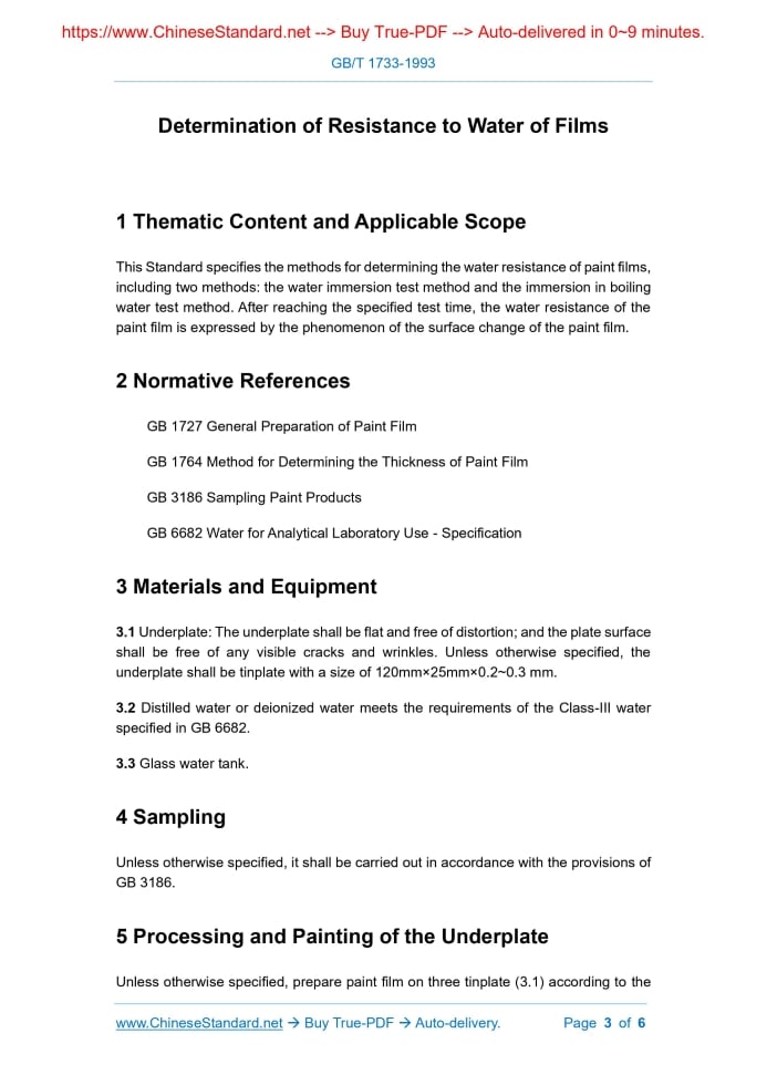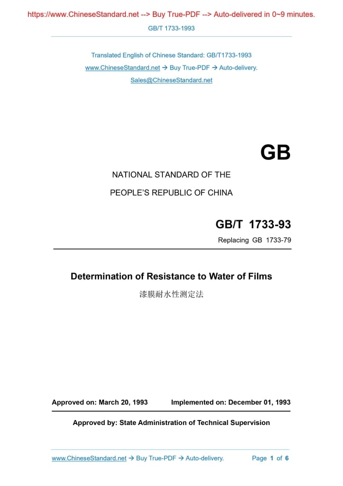 GB/T 1733-1993: Determination of resistance to water of films Delivery: 9 seconds. True-PDF full-copy in English & invoice will be downloaded + auto-delivered via email. See step-by-step procedure GB/T 1733: Historical versions