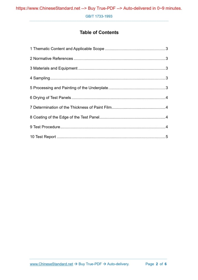 GB/T 1733-1993: Determination of resistance to water of films---This is an excerpt. Full copy of true-PDF in English version (including equations, symbols, images, flow-chart, tables, and figures etc.), auto-downloaded/delivered in 9 seconds, can be purchased online: https://www.ChineseStandard.net/PDF.aspx/GBT1733-1993GB NATIONAL STANDARD OF THE PEOPLE’S REPUBLIC OF CHINA GB/T 1733-93 Replacing GB 1733-79 Determination of Resistance to Water of Films APPROVED ON: MARCH 20, 1993 IMPLEMENTED ON: DECEMBER 01, 1993 Approved by: State Administration of Technical Supervision Table of Contents1 Thematic Content and Applicable Scope ... 3 2 Normative References ... 3 3 Materials and Equipment ... 3 4 Sampling ... 3 5 Processing and Painting of the Underplate ... 3 6 Drying of Test Panels ... 4 7 Determination of the Thickness of Paint Film ... 4 8 Coating of the Edge of the Test Panel ... 4 9 Test Procedure ... 4 10 Test Report ... 5 Determination of Resistance to Water of Films1 Thematic Content and Applicable ScopeThis Standard specifies the methods for determining the water resistance of paint films, including two methods: the water immersion test method and the immersion in boiling water test method. After reaching the specified test time, the water resistance of the paint film is expressed by the phenomenon of the surface change of the paint film.2 Normative ReferencesGB 1727 General Preparation of Paint Film GB 1764 Method for Determining the Thickness of Paint Film GB 3186 Sampling Paint Products GB 6682 Water for Analytical Laboratory Use - Specification3 Materials and Equipment3.1 Underplate: The underplate shall be flat and free of distortion; and the plate surface shall be free of any visible cracks and wrinkles. Unless otherwise specified, the underplate shall be tinplate with a size of 120mm×25mm×0.2~0.3 mm. 3.2 Distilled water or deionized water meets the requirements of the Class-III water specified in GB 6682. 3.3 Glass water tank.4 SamplingUnless otherwise specified, it shall be carried out in accordance with the provisions of GB 3186.5 Processing and Painting of the UnderplateUnless otherwise specified, prepare paint film on three tinplate (3.1) according to the the product standard. 9.2 Method-B: Immersion in boiling water test method 9.2.1 Immersion of test panels Add distilled water or deionized water (3.2) to the glass water tank (3.3). Unless otherwise specified, keep the water (3.2) in a boiling state until the end of the test. Put three test panels into it, and immerse 2/3 of the length of each test panel in water. 9.2.2 Inspection of test panel Check and evaluate the test panel in accordance with the provisions of 9.1.2 specified in Method-A.10 Test ReportThe test report shall include the following: a. The model and name of the tested product; b. Explain the use of this national standard (GB/T 1733) and which method (Method- A or Method-B); c. Any difference from the content specified in this national standard; d. Test results (detailed records of paint film damage and evaluation results); e. Test date. ____________________ ......Source: Above contents are excerpted from the full-copy PDF -- translated/reviewed by: www.ChineseStandard.net / Wayne Zheng et al. Tips & Frequently Asked Questions:Question 1: How long will the true-PDF of English version of GB/T 1733-1993 be delivered?Answer: The full copy PDF of English version of GB/T 1733-1993 can be downloaded in 9 seconds, and it will also be emailed to you in 9 seconds (double mechanisms to ensure the delivery reliably), with PDF-invoice.Question 2: Can I share the purchased PDF of GB/T 1733-1993_English with my colleagues?Answer: Yes. The purchased PDF of GB/T 1733-1993_English will be deemed to be sold to your employer/organization who actually paid for it, including your colleagues and your employer's intranet.Question 3: Does the price include tax/VAT?Answer: Yes. Our tax invoice, downloaded/delivered in 9 seconds, includes all tax/VAT and complies with 100+ countries' tax regulations (tax exempted in 100+ countries) -- See Avoidance of Double Taxation Agreements (DTAs): List of DTAs signed between Singapore and 100+ countriesQuestion 4: Do you accept my currency other than USD?Answer: Yes. www.ChineseStandard.us -- GB/T 1733-1993 -- Click this link and select your country/currency to pay, the exact amount in your currency will be printed on the invoice. Full PDF will also be downloaded/emailed in 9 seconds.Question 5: Should I purchase the latest version GB/T 1733-1993?Answer: Yes. Unless special scenarios such as technical constraints or academic study, you should always prioritize to purchase the latest version GB/T 1733-1993 even if the enforcement date is in future. Complying with the latest version means that, by default, it also complies with all the earlier versions, technically.How to buy and download a true PDF of English version of GB/T 1733-1993?A step-by-step guide to download PDF of GB/T 1733-1993_EnglishStep 1: Visit website https://www.ChineseStandard.net (Pay in USD), or https://www.ChineseStandard.us (Pay in any currencies such as Euro, KRW, JPY, AUD).Step 2: Search keyword "GB/T 1733-1993". Step 3: Click "Add to Cart". If multiple PDFs are required, repeat steps 2 and 3 to add up to 12 PDFs to cart. Step 4: Select payment option (Via payment agents Stripe or PayPal). Step 5: Customize Tax Invoice -- Fill up your email etc. Step 6: Click "Checkout". Step 7: Make payment by credit card, PayPal, Google Pay etc. After the payment is completed and in 9 seconds, you will receive 2 emails attached with the purchased PDFs and PDF-invoice, respectively. Step 8: Optional -- Go to download PDF. Step 9: Optional -- Click Open/Download PDF to download PDFs and invoice. See screenshots for above steps: Steps 1~3 Steps 4~6 Step 7 Step 8 Step 9 |