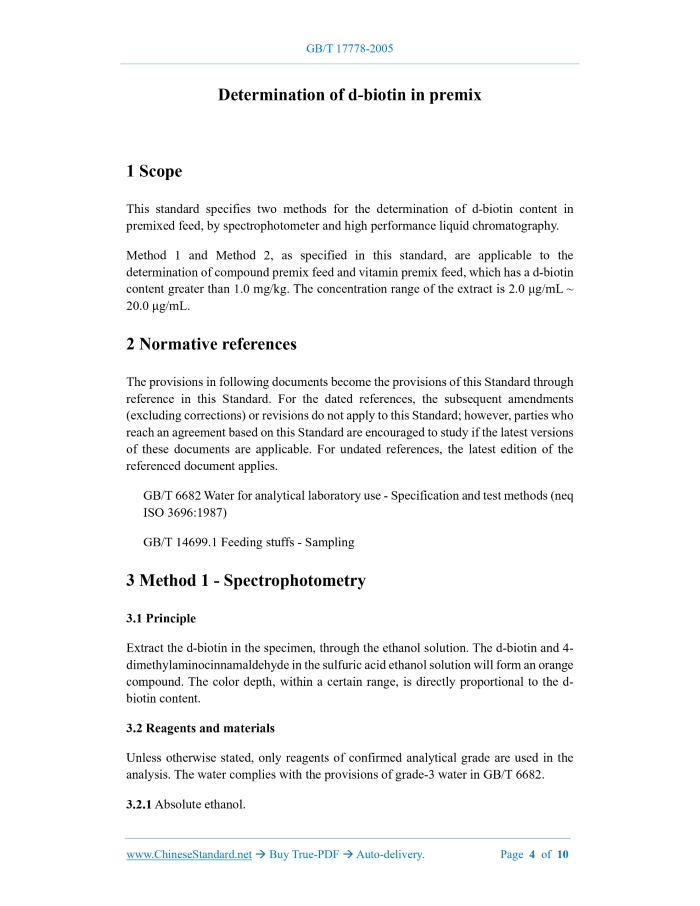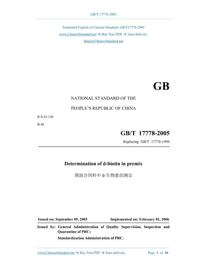 GB/T 17778-2005: Determination of d-biotin in premix Delivery: 9 seconds. True-PDF full-copy in English & invoice will be downloaded + auto-delivered via email. See step-by-step procedure Status: Valid GB/T 17778: Historical versions