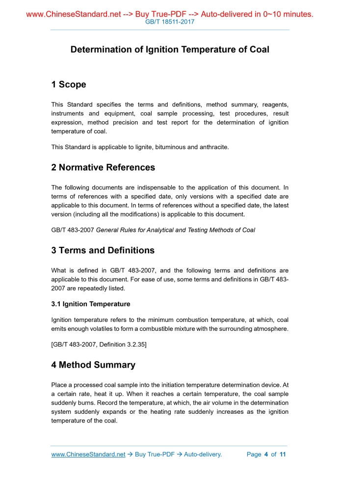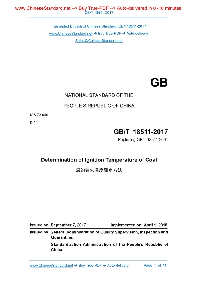 GB/T 18511-2017: Determination of Ignition Temperature of Coal Delivery: 9 seconds. True-PDF full-copy in English & invoice will be downloaded + auto-delivered via email. See step-by-step procedure Status: Valid GB/T 18511: Historical versions
