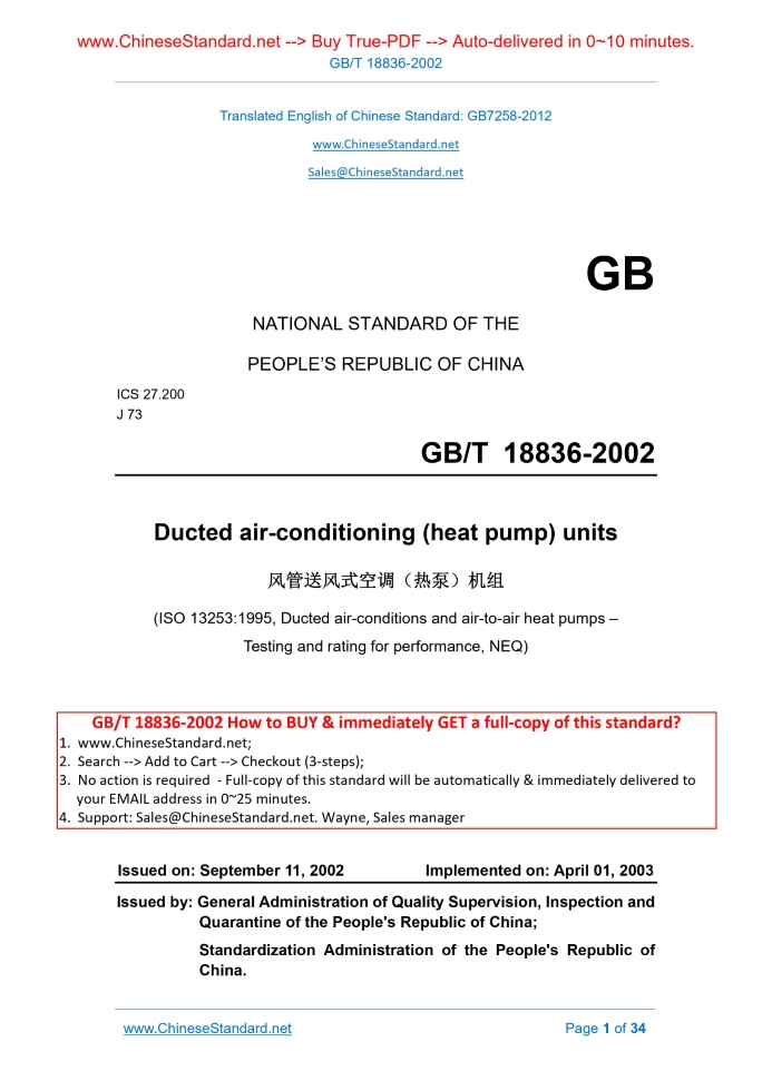 GB/T 18836-2002: Ducted air -- Conditioning (heat pump) units Delivery: 9 seconds. True-PDF full-copy in English & invoice will be downloaded + auto-delivered via email. See step-by-step procedure Status: Obsolete GB/T 18836: Historical versions
