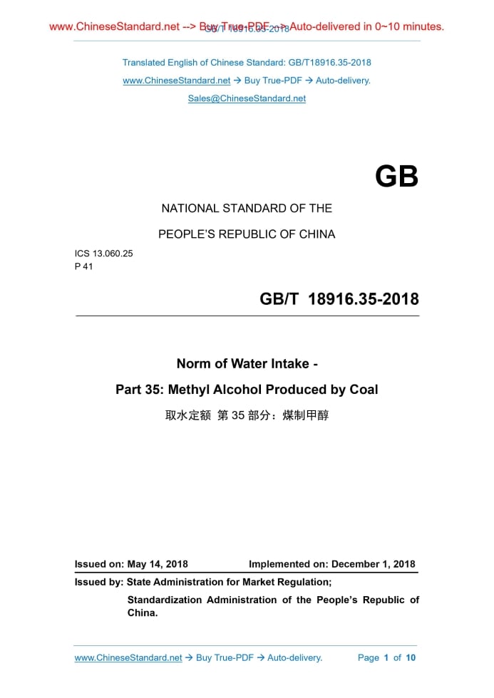 GB/T 18916.35-2018: Norm of Water Intake - Part 35: Methyl Alcohol Produced by Coal Delivery: 9 seconds. True-PDF full-copy in English & invoice will be downloaded + auto-delivered via email. See step-by-step procedure Status: Valid