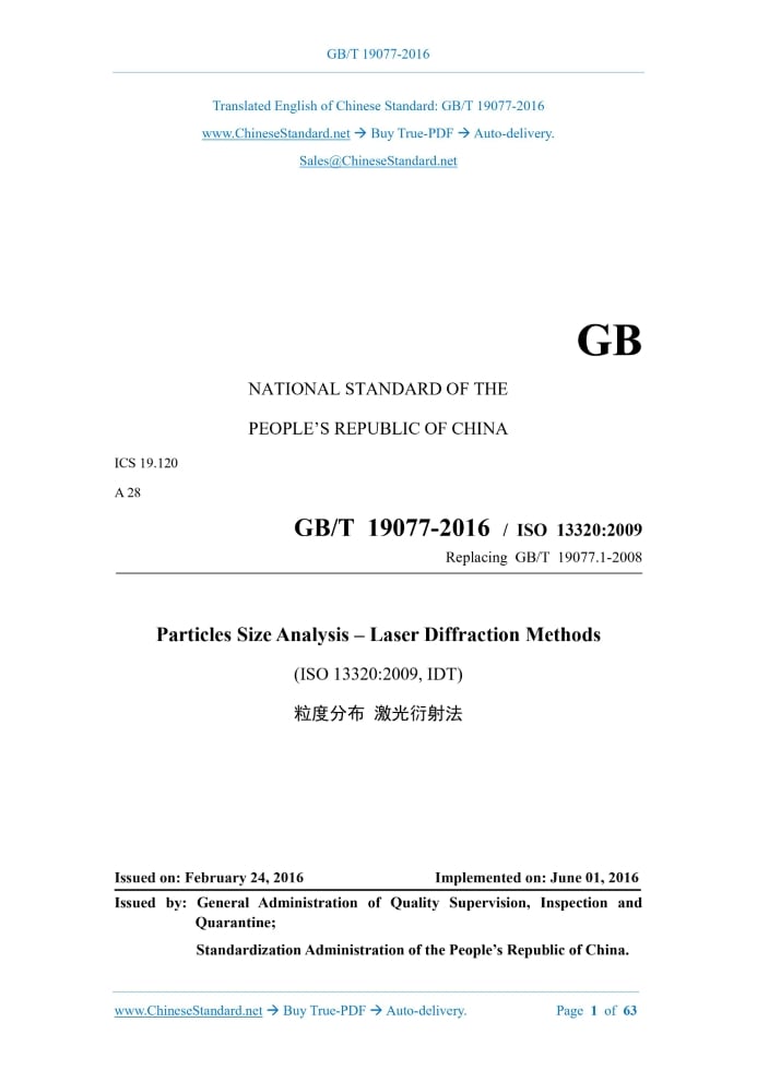 GB/T 19077-2016: Particle size analysis -- Laser diffraction methods Delivery: 9 seconds. True-PDF full-copy in English & invoice will be downloaded + auto-delivered via email. See step-by-step procedure Status: Valid GB/T 19077: Historical versions