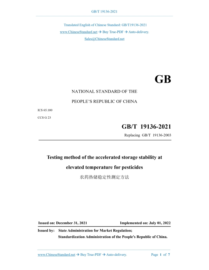 GB/T 19136-2021: Testing method of the accelerated storage stability at elevated temperature for pesticides Delivery: 9 seconds. True-PDF full-copy in English & invoice will be downloaded + auto-delivered via email. See step-by-step procedure Status: Valid GB/T 19136: Historical versions