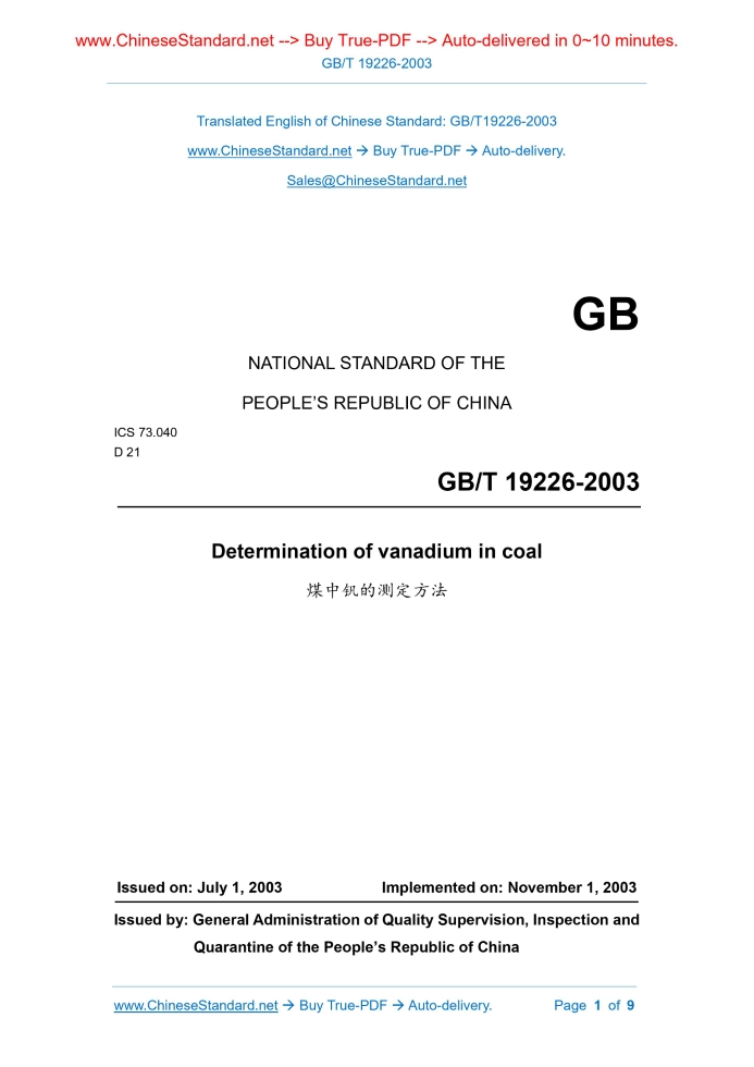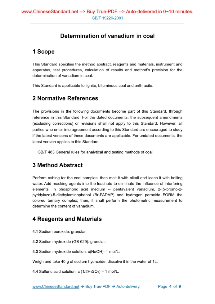 GB/T 19226-2003: Determination of vanadium in coal Delivery: 9 seconds. True-PDF full-copy in English & invoice will be downloaded + auto-delivered via email. See step-by-step procedure Status: Valid