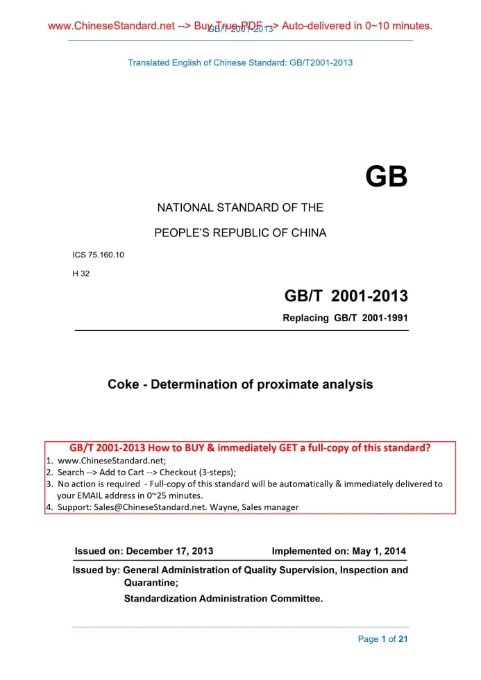 GB/T 2001-2013: Coke - Determination of proximate analysis Delivery: 9 seconds. True-PDF full-copy in English & invoice will be downloaded + auto-delivered via email. See step-by-step procedure Status: Valid GB/T 2001: Historical versions